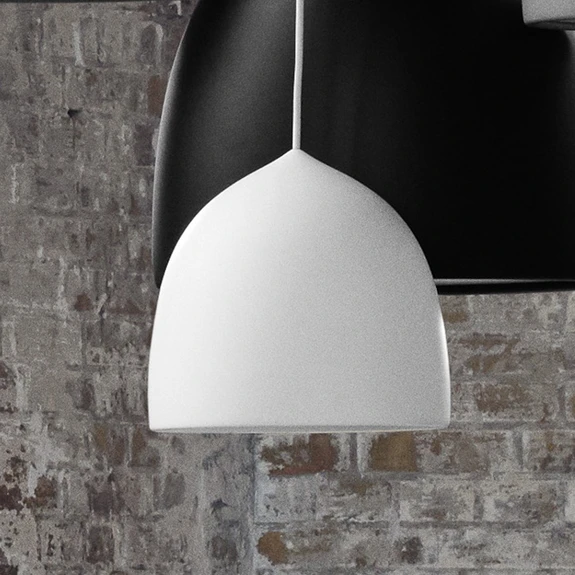 Die Form des Aluminiumschirms von Suspence™ ist von der Natur inspiriert: GamFratesi nahmen sich einen in der Luft schwebenden Wassertropfen zum Vorbild und übersetzten dessen Bewegung in eine physische Form. Es entstand eine Hängeleuchte mit einer weichen, abgerundeten Form, die das abstrahlende Licht des eingesetzten Leuchtmittels durch den integrierten Kunststoff-Diffusor blendfrei abstrahlt. Suspence™ kann zur Allgemein- oder Bereichsbeleuchtung eingesetzt werden. Sie bietet beispielsweise eine behagliche Esstischbeleuchtung.