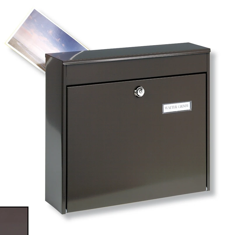Geräumiger Zaunbriefkasten Potsdam 878 aus verzinktem Stahl, lackiert, mit rückwärtiger Einwurfklappe fasst knickfrei Briefsendungen bis zum Format DIN C4. Der Briefkasten eignet sich auch für die Montage an der Tür-Innenseite und ist als Durchwurfkasten nutzbar. Die Einwurfklappe der Rückseite lässt sich problemlos ausbauen.