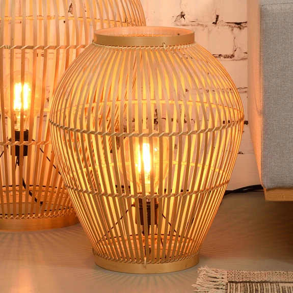 Dekorative Stehleuchte Tuvalu aus naturfarbenem Bambus