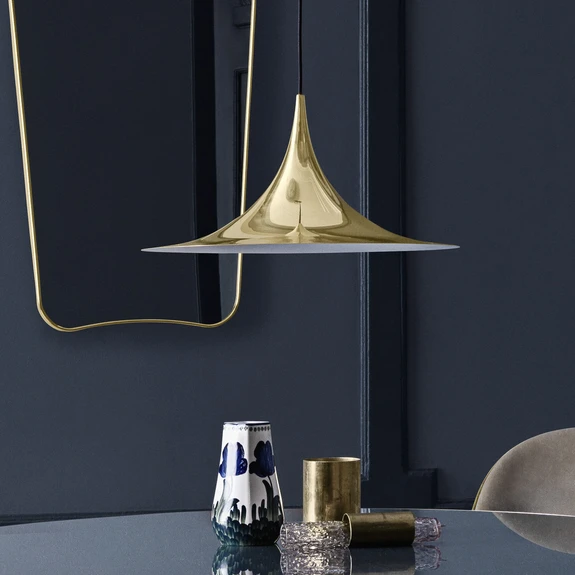 Die Hängeleuchte Semi wird von der Firma Gubi aus Dänemark produziert, die sich seit ihrer Gründung im Jahr 1967 der Herstellung hochwertiger Designprodukte im Inneneinrichtungs- und Leuchtensektor widmet.