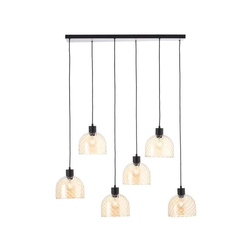 Hängelampe Casto, Länge 95 cm, bernstein, 6-flg., Glas