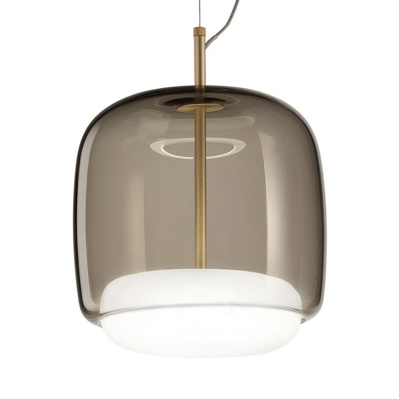 Stilvoll und elegant wirkt die in charmanter Doppelglastechnik gearbeitete LED-Hängelampe Jube: Hier wurden zwei einzeln geblasene Glasteile kombiniert, wodurch charmante Ton-in-Ton-Effekte entstehen, denn das untere Element ist weiß und mit einer LED-Lichtquelle bestückt, das obere, umlaufende Glas ist farbig-transparent. Eine Kreation von Favaretto & Partner in Zusammenarbeit mit der Produktionsstätte Vistosi.