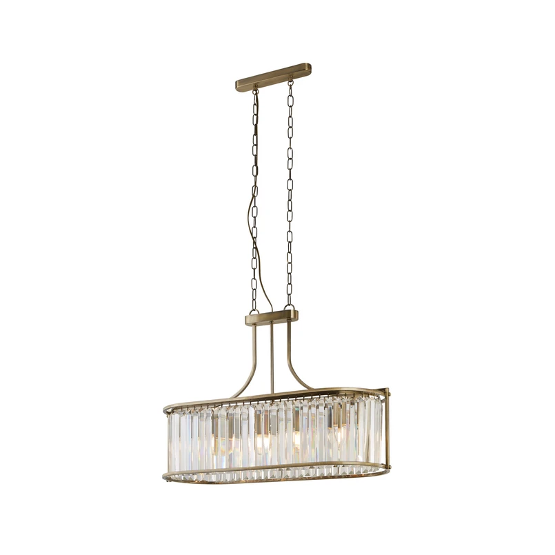 Hängelampe Victoria, messingfarben, Kristallglas, 78 cm, E27