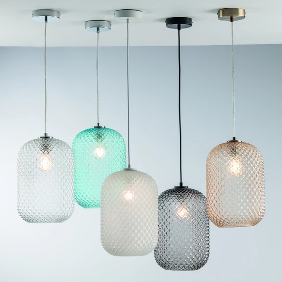 Hängeleuchte Ashford S15 mit Relief-Glasschirm