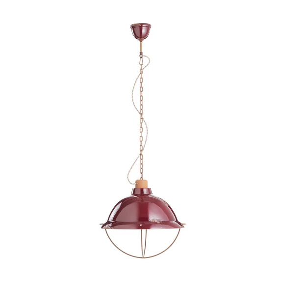 Die Pendelleuchte C1680 ist ein stilvolles Einrichtungselement mit Vintage-Charme, kann aber auch zur funktionalen direkten Beleuchtung eingesetzt werden. Der Baldachin sowie der große, kuppelförmige Schirm bestehen aus Keramik. Die Lackierung ist an einigen Stellen nicht durchgängig aufgebracht, sodass der Eindruck entsteht, die Hängeleuchte trage im Laufe der Zeit angesammelte Gebrauchsspuren. Auch die metallischen Elemente der unterhalb des Schirms verlaufenden Schutzstreben sowie der Kettenaufhängung tragen zu dem auf alt getrimmten Erscheinungsbild bei.