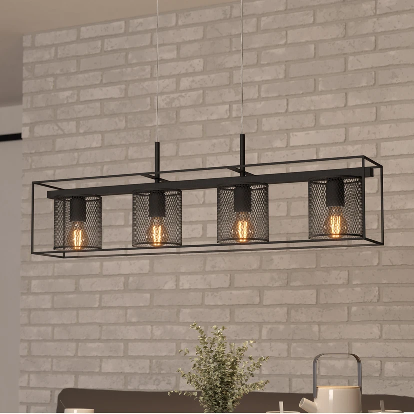 Hängeleuchte Catterick, schwarz, vier Käfigschirme