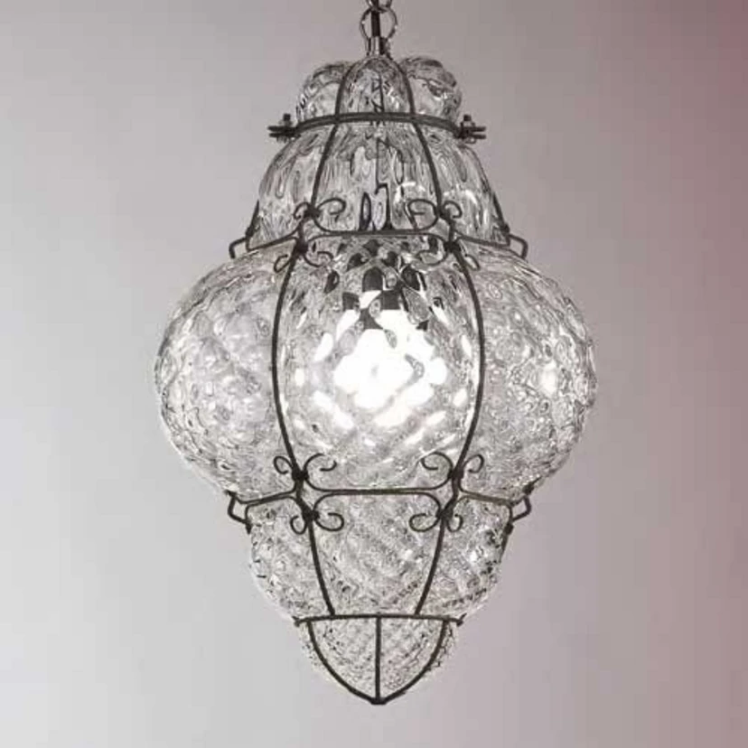 Der mundgeblasene Glaskörper der Leuchte erscheint in einer dezenten Form. Das transparente Glas verfügt über eine unebene Struktur und der Glaskörper selbst ist in kleinen Abstufungen arrangiert. Das geschmackvolle Scavo-Glas scheint in einer Art verschnörkeltem Gitterkorb eingefasst zu sein. Der Edelstahl in der Farbe Anthrazit legt sich filigran um das Glas herum. Dieses elegante, italienische Design ist von Hand gearbeitet und schafft eine Stimmung zum Wohlfühlen. Ob nun als Zentrum der Dekoration oder als ein selbstverständliches Objekt, die Hängeleuchte findet sicherlich einen harmonischen Platz im Raum. Ihr helles Licht schafft ein lebendiges Ambiente und untermalt betont natürliche Wohnkonzepte. Die traubenförmige Leuchte ist hierfür in vielen Größen erhältlich.