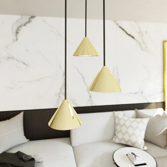 Die Hängeleuchte Elit besticht durch ihr modernes Design und die harmonische Kombination aus schwarzem und goldenem Stahl. Diese dreiflammige Leuchte ist ein stilvolles Highlight für Wohnzimmer, Esszimmer und Flurbereiche. Die sorgfältige Fertigung in Europa unterstreicht die hohe Qualität und das besondere Augenmerk auf Details.