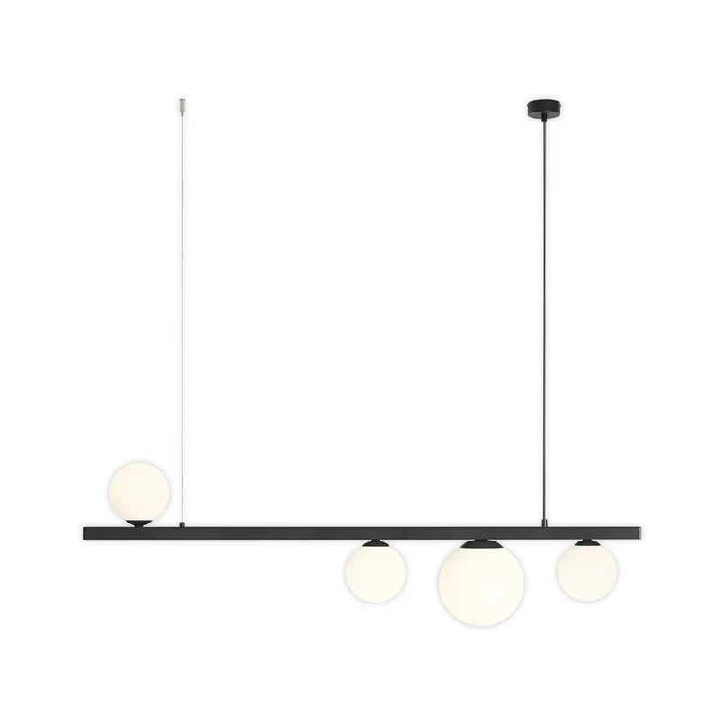 Hängeleuchte Garda 4, Balken, Metall, Glas, schwarz, 4-fl.