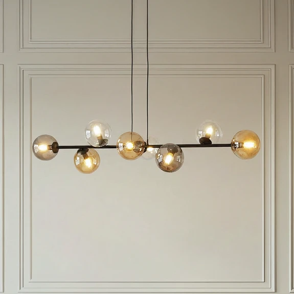 Hängeleuchte Glassy, 8-flammig, schwarz, grafit/amber/klar
