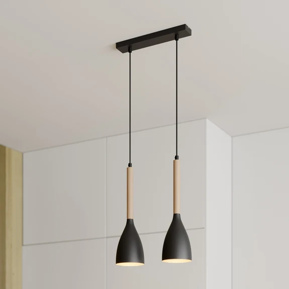 Hängeleuchte Muza, zweiflammig, schwarz/Holz hell