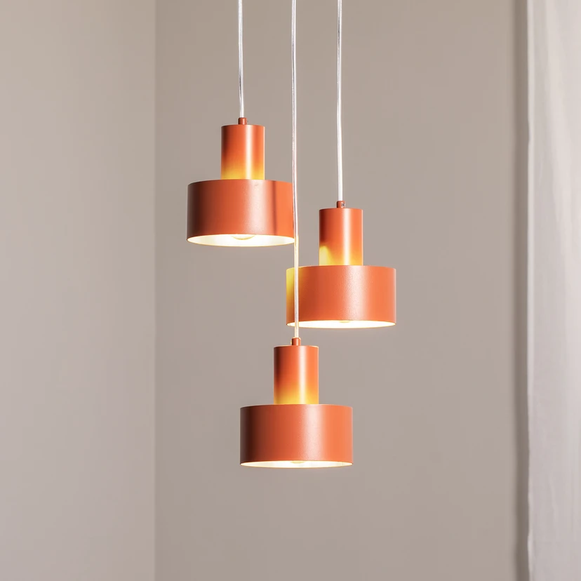 Hängeleuchte Rif 3, ziegelrot, rund, 3-flammig, Ø 33 cm