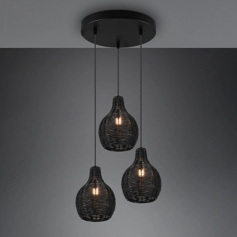 Hängeleuchte Sprout aus Rattan, 3-flammig