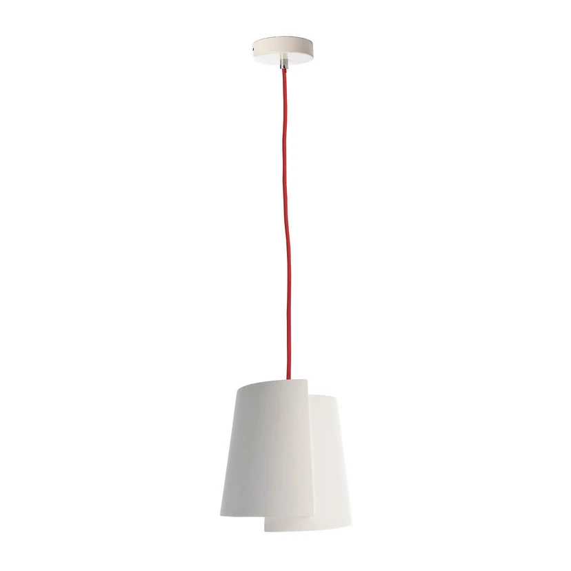 Die einflammige Pendelleuchte Twister überzeugt als unaufdringlicher Lichtspender über Sitzgruppen, Tresen und Tischen - dank des langen Kabels auch in Räumen mit großer Deckenhöhe. Ihr Schirm ist aus Gips gefertigt und nimmt die Gestalt eines Kegelstumpfs an. Die vertikal offene Form gewährleistet nicht nur direkte, nach unten gerichtete Beleuchtung, sondern auch dezente Grundbeleuchtung über die Decke. Seitlich erscheint die Hängeleuchte absolut blendfrei. Das rote Kabel wird in einen runden Baldachin geführt.