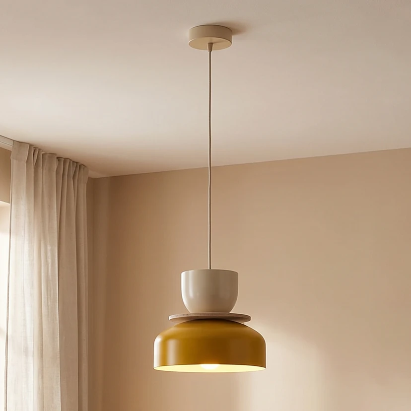 Die Hängeleuchte Uto in gelb und creme vereint modernes Design mit europäischer Handwerkskunst. Der Metallschirm sorgt für eine stilvolle und zugleich robuste Optik, die sich perfekt in das Ambiente eines Esszimmers einfügt. Die Farbkombination aus gelb und creme verleiht der Leuchte eine warme und einladende Ausstrahlung, die jeden Raum aufwertet.