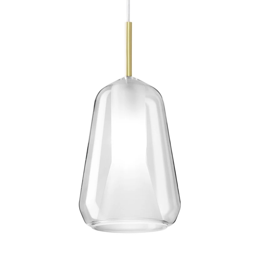 Die aus Borosilikat-Glas gefertigte Hängeleuchte X-Ray zeichnet sich durch ihre zurückhaltende, grazile Optik aus. Der Leuchtenschirm, welcher den Hauptteil der Leuchte einnimmt, ist wie ein Kegel geformt. In der Mitte des Kegels ist das Glas satiniert, wodurch ein blendfreier Lichtaustritt möglich ist und die Aufmerksamkeit nicht auf das Leuchtmittel an sich gelenkt wird. Durch das matte Glas ist es nahezu versteckt.