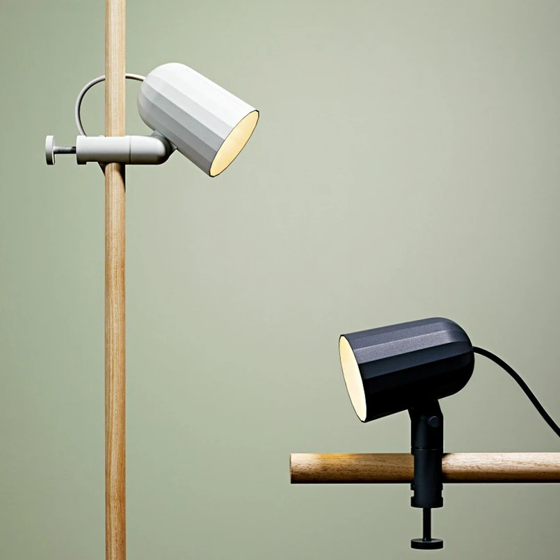 Noc Clip ist eine universelle Klemmleuchte mit einem facettierten Lampenschirm aus Druckguss-Aluminium. Ihr gefräster Aluminiumschaft und ihre Klemme bieten zwei Einstellpunkte, so dass sich die Leuchte an Tischplatten, Regalen oder am Kopfteil vom Bett befestigen lässt. Die Klemmleuchte ist mit einer 300 cm langen Zuleitung mit integriertem Schalter ausgestattet.