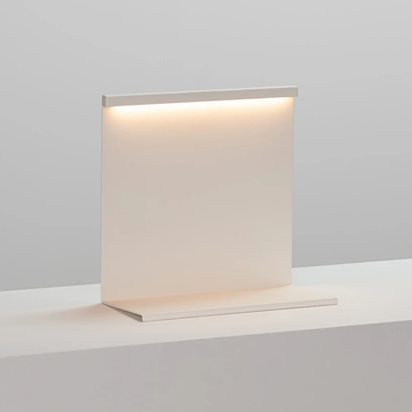 Für die aus dünnen Ebenen vertikalen Stahlblechs konstruierte LED-Tischleuchte LBM ließ sich der mexikanische Designer Moisés Hernández von den Arbeiten seines Landsmannes Luis Barragan, einem Architekten, inspirieren. In diesem Entwurf spiegelt sich seine Faszination für monolithische Geometrie, Farbe, Licht und Schatten wider.