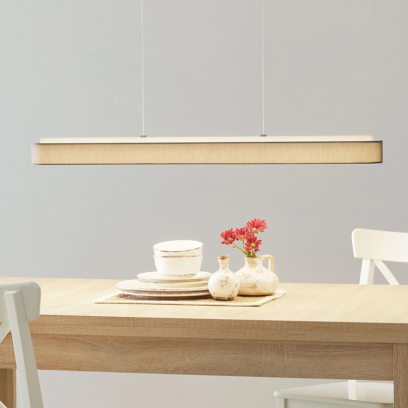 LED-Pendelleuchte Bora mit Balken-Schirm aus Chintz