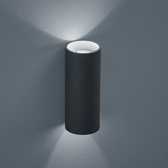Die zylinderförmige LED-Außenwandleuchte Swift ist aus hochwertigem Aluminium gefertigt und in der zeitlos schönen Farbe Graphit lackiert worden. Oben und unten wurde die Leuchte mit energieeffizienten LEDs bestückt, so dass ein beidseitiger Lichtaustritt gewährt wird. Warmweiß und in einer angenehmen Lichtintensität sorgt die Leuchte damit nicht nur für eine sichere Ausleuchtung dunkler Wege rund ums Haus, sondern auch für eine dekorative Akzentuierung der Hausfassade.