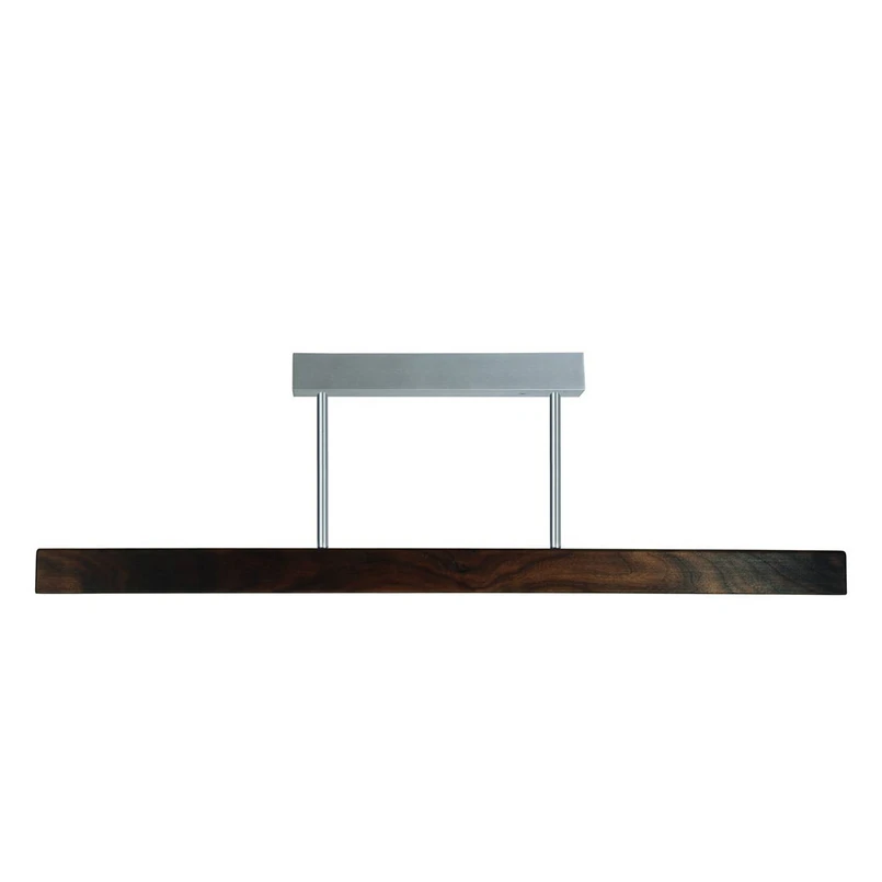Der längliche Massivholzkörper der LED-Deckenleuchte Leonora besitzt an seiner Unterseite eine Aussparung, in der hinter einem matten Acryl-Diffusor die LED-Leuchtelemente sitzen. Der Holzkörper ist mit zwei Metallrohren an einem Deckenbaldachin befestigt, der ebenfalls aus mattiertem Metall besteht. Die Geradlinigkeit und metallische Befestigung dieser Deckenleuchte passt perfekt zu einer modernen Einrichtung, ist aber dank des Massivholzkörpers sehr wohnlich. Leonoras Lichtoutput ist über externe Phasenabschnittdimmer steuerbar. Dabei verringert sich die Farbtemperatur von 4.000 K bei höchster Stufe bis zu 2.200 K bei niedrigster Stufe (dim-to-warm).