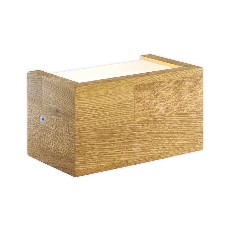 Quaderförmige LED-Wandleuchte Timon aus Holz - oben und unten strahlend, mit Touchdimmer