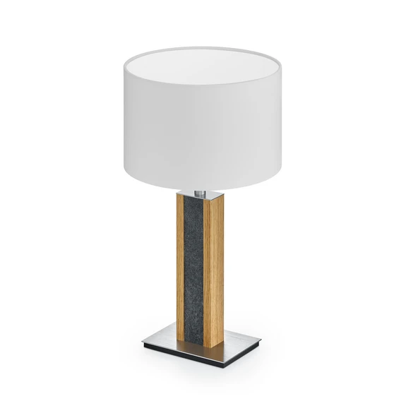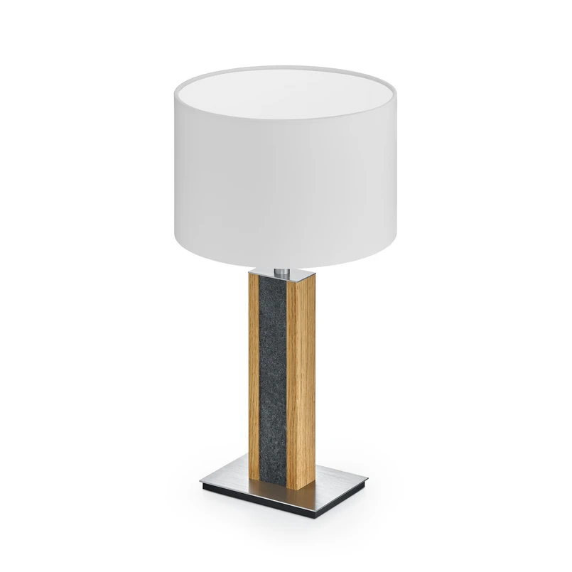 HerzBlut Tischleuchte Karl G, rund, Holz/Granit, weiß, E27