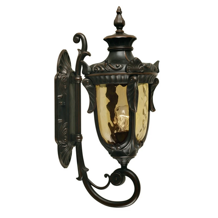 Hochwertig in ihrer Gestaltung zeigt sich diese beeindruckende Außenwandleuchte mit einem Metallgehäuse in ansprechender Bronze-Optik. Das Glas der Leuchte ist in stimmungsvollem Amber gehalten und unterstreicht den antiken Look dieser einer Laterne nachempfundenen Beleuchtung. So lassen sich damit Außenfassaden rund um das Haus verschönern und diese Bereiche werden mit Philadelphia ausreichend beleuchtet.