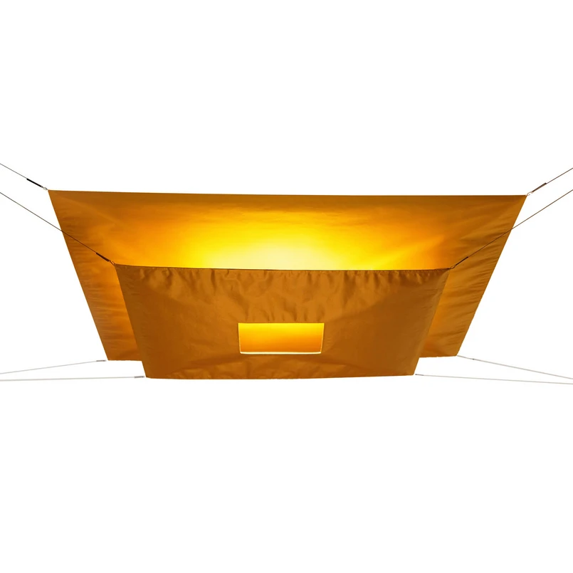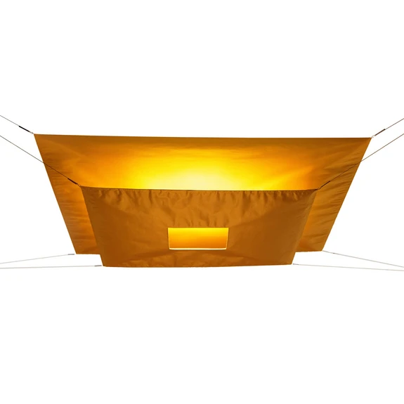 Die Lil Luxury 2 ist sozusagen die leuchtende Luxusvariante eines Sonnensegels. Ihre lackierten Papiersegel scheinen schwerelos im Raum zu schweben. Angebracht wird die Deckenleuchte Lil Luxury mit Seilen aus Polyestergeflecht und ist optimal geeignet für Räume mit niedrigen Decken. Die Lichtquellen werden optimal von den Segeln verdeckt und sorgen somit für ein blendfreies, indirektes Licht, das angenehm und großflächig von der Decke in den Raum strömt.