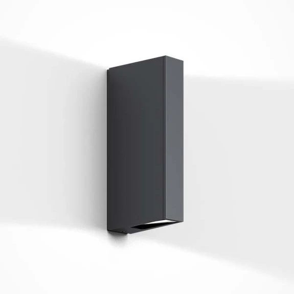 Die Außenwandleuchte Gap Y besitzt einen sehr schmalen Leuchtenkörper. Gefertigt aus Aluminium, verjüngt sich die Leuchte nach vorne hin, so dass durch den Winkel dem Betrachter die schlanke Frontansicht sofort ins Auge springt. Die zwei Opalgläser sorgen dafür, dass das Licht blendfrei und homogen nach oben und unten abgegeben wird. Durch eine leichte Neigung der Lichtaustrittsflächen entstehen zudem schöne Lichtverhältnisse. Bei Bedarf kann die Außenleuchte sogar mittels einem Phasenanschnitts- oder Phasenabschnittsdimmer gedimmt werden.