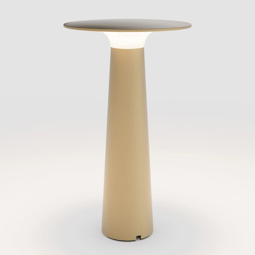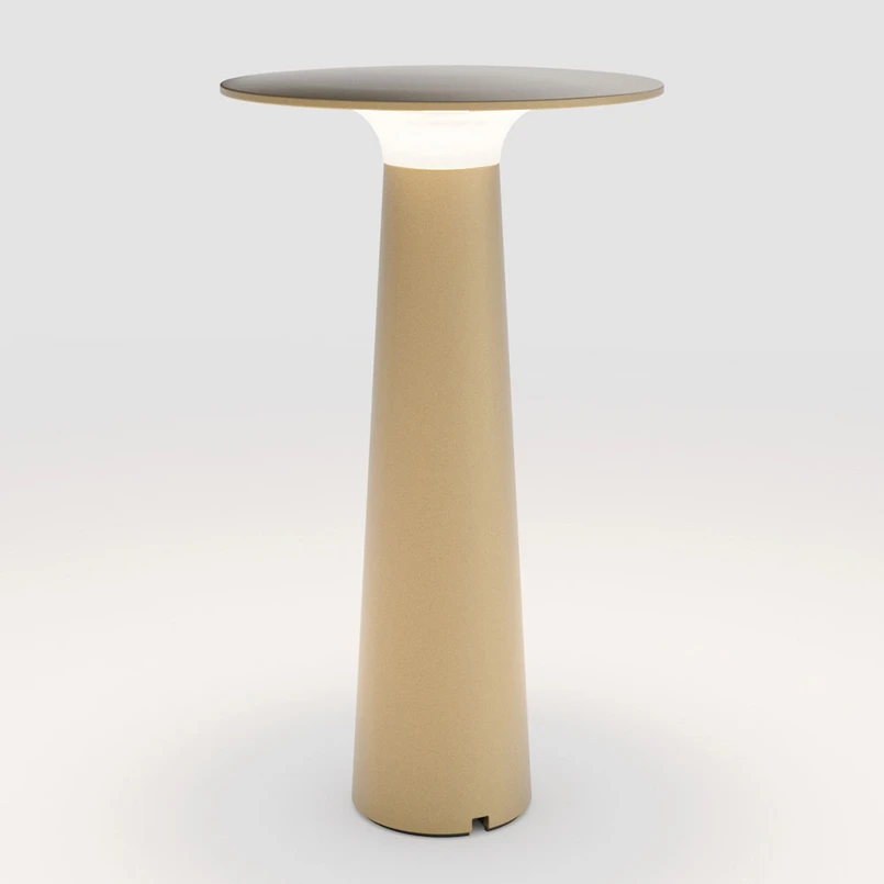 Der leicht konisch geformte, schlanke Standfuß der Akkutischleuchte schließt in einem weißen Diffusor ab, der im weiteren Verlauf die Unterseite des runden, flachen, deckelartigen Schirmes bildet. Die warmweiße LED-Lichtquelle strahlt somit das Licht nur nach unten und zu den Seiten ab, nach oben ist sie völlig abgeschirmt. Lix lässt sich überall hin mitnehmen, da sie über einen ausdauernden Akku verfügt, der lange Leuchtdauer verspricht und der problemlos über das USB-Kabel (inkl.) und ein Ladegerät aufgeladen werden kann.