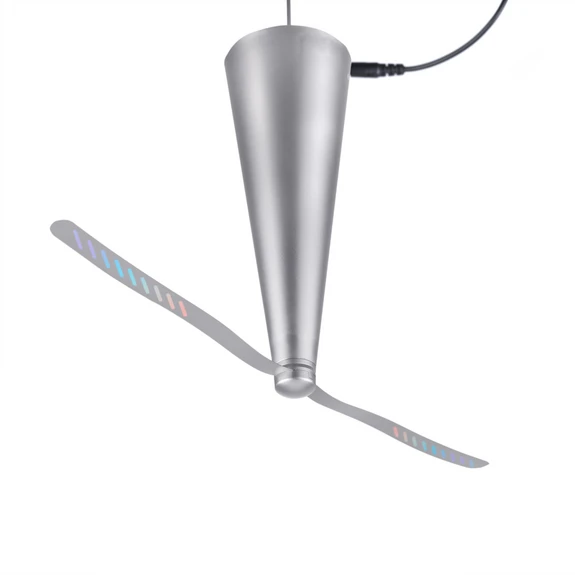 Der Fliegenvertreiber kann sowohl auf den Tisch gestellt als auch am im Fuß integrierten Haken aufgehängt werden. Die Stromzufuhr funktioniert per USB-Kabel, wahlweise auch mit zwei AA-Batterien (nicht inkl.).