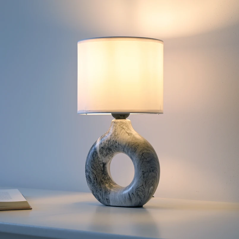 Carara ist eine Tischleuchte, die sich sowohl in Wohnräumen als zusätzliche Lichtquelle auf Möbelstücken oder Beistelltischen als auch als Nachttischleuchte nutzen lässt. Die Kombination aus einem ringförmigen Fuß aus Keramik und einem zylindrischen Schirm aus Stoff verleiht ihr eine besondere Wirkung und lässt eine angenehme Beleuchtung entstehen. In die E27-Fassung kann ein Leuchtmittel nach Wahl (bis 25 W) eingesetzt werden. Die Bedienung erfolgt über den im Kabel integrierten Schalter.