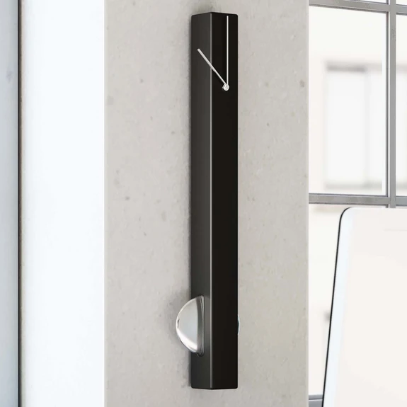 Diese schlanke Wanduhr Pendulum vereint Ästhetik und Funktionalität. Ihr minimalistisches Design fällt Design-Fans sofort auf, denn die Wanduhr ist schlicht in Chrom und Schwarz gehalten. Auch heute noch sind Uhren zeitlose, dekorative Elemente, die die Einrichtung jedes Zuhauses abrunden. Sie helfen nicht nur, die Zeit im Auge zu behalten, sondern übernehmen auch die Rolle einer schicken Wanddekoration. Das Modell Pendulum bringt noch einen weiteren Vorteil mit sich. Mit einer Breite von nur 6 Zentimetern passt die Uhr auch an sehr schmale Wände oder in kleine Nischen.