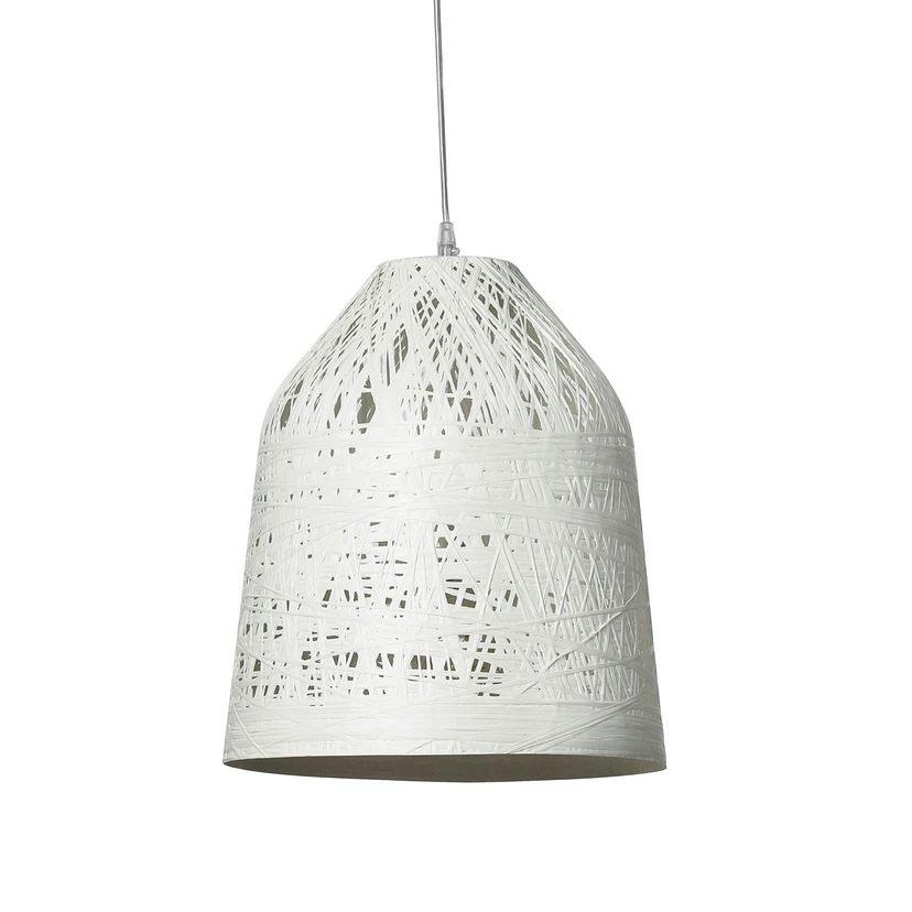 Besonders gut kommt die LED-Pendelleuchte Black Out in einer ansonsten dunklen Umgebung zur Geltung, wie sie beim namensgebenden Stromausfall vorzufinden ist. Ihr Schirm besteht aus einem Geflecht aus Fiberglas-Fäden, die bei der Herstellung um eine sich drehende Form gesponnen werden, bis nur noch kleine Zwischenräume verbleiben. Beispielsweise über einem Terrassentisch bietet der nach unten offene Schirm direkte Beleuchtung. Die Abpendelhöhe lässt sich den Gegebenheiten entsprechend anpassen, indem das 5 m lange Kabel beispielsweise über den Deckenbalken gewickelt wird.