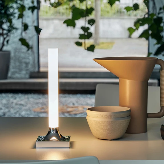 Goodnight von Philippe Starck wird mit Akku betrieben und kann in drei Stufen geschaltet werden: