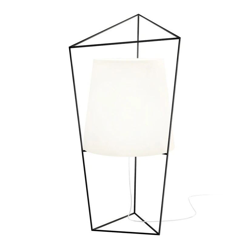 Dem Wunsch, eine Neuinterpretation der klassischen Tischlampe zu gestalten, entsprang das moderne Design der Leuchte Tatu. Von der eigentlichen Form blieb am Ende nur der Lampenschirm, der hier in einer feinen wie metallenen Struktur eingebettet wird. Für das Design verantwortlich zeichnet das italienische Design-Studio MrSmith, das für den Namen seines Entwurfs die Zahl Drei aus der ostafrikanischen Swahili-Sprache gewählt hat. Das geometrische Dreieck findet sich in dem umrandenden Metallgestell wieder, welches den klassischen Lampenschirm zu beiden Seiten einschließt.