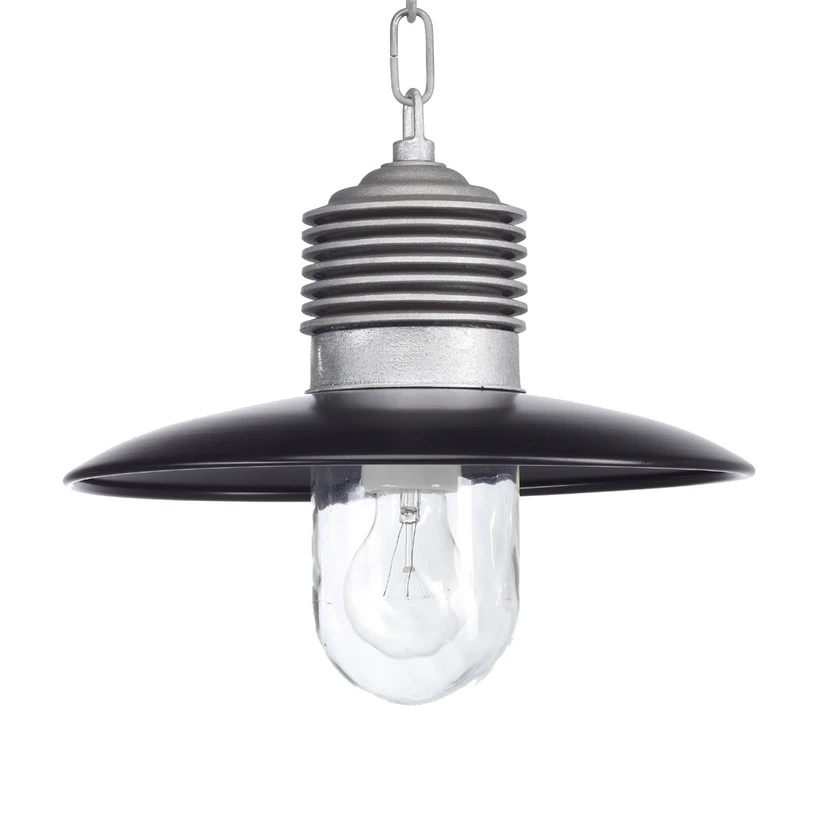 Die Außen-Hängeleuchte Ampere zeichnet sich durch klassisches Design und robuste Verarbeitung des Materials Aluminium aus, das für die Fertigung der Aufhängung und des Gestells verwendet wurde. Der klare Glas-Leuchtenkörper sorgt für helles Licht, so dass sich die Leuchte ideal zur Umgebungsbeleuchtung von Fabrikhallen, Werkstätten usw. anbietet. Ampere ist mit der Schutzart IP44 ausgestattet, d. h., sie ist gegen das Eindringen von Spritzwasser sowie von festen Fremdkörpern mit einem Durchmesser 1 mm geschützt. Inklusive 1 Meter Kabel.