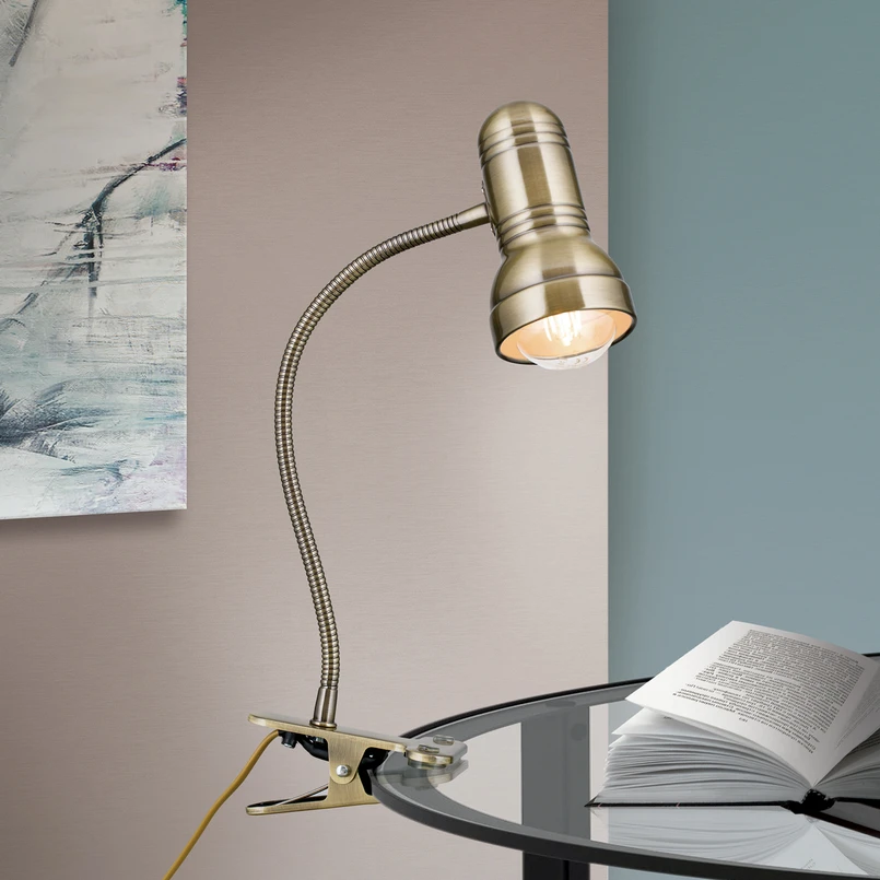 Schicke Klemmleuchte Samal für viele Zwecke. Die Leuchte ist dank Metallklemme flexibel anzubringen und lässt sich dank Schwanenhals nach Belieben positionieren.