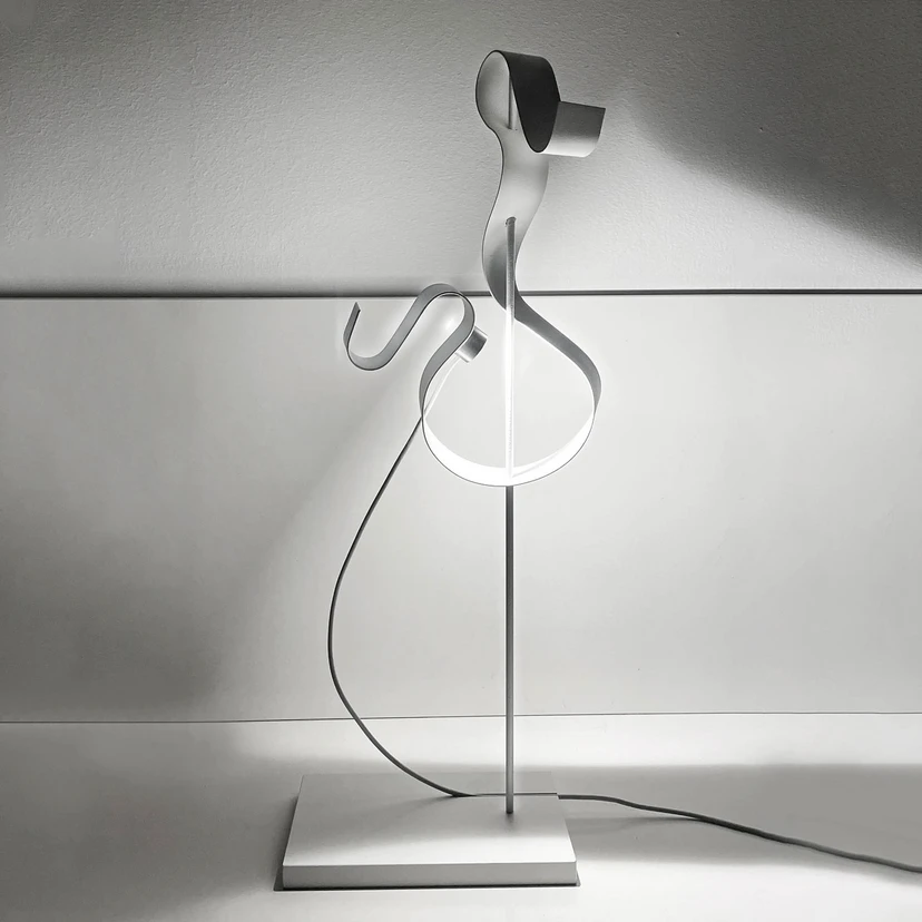 Spannende LED-Tischleuchte Curve aus Stahl mit schwungvoller Optik