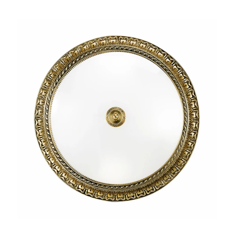 Hier kommt die runde Deckenleuchte Milady, eine stimmungsvolle, majestätische Lichtschönheit. Metall mit extravagantem Finish, feinstes satiniertes Glas, eingerahmt von eleganten Ornamenten. Ein zeitloses Kunsthandwerk in zauberhaft klassischem Look, für direkte und indirekte Beleuchtung.