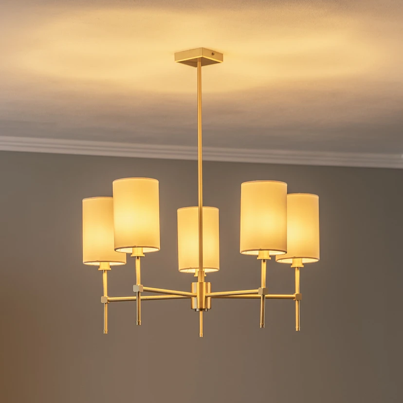 Kronleuchter Azzi Textilschirm fünfflammig weiß
