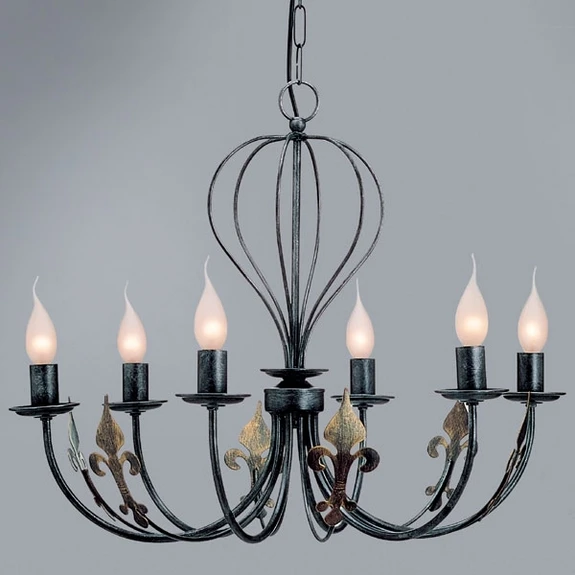 6-flammiger Kronleuchter Castello in rustikaler Optik aus silber-antikem Metall