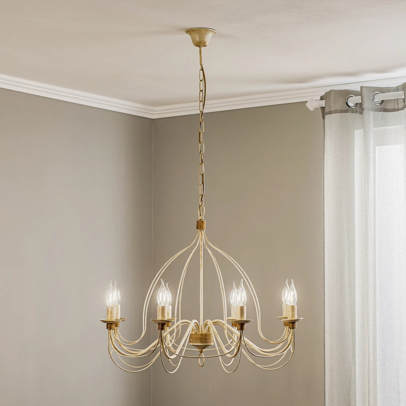 Der Kronleuchter FILO mit acht Flammen ist nicht nur eine bloße Lichtquelle, sondern setzt durch seinen gekonnten Landhausstil auch bewusste Wohnakzente. Durch die geschwungene Linienführung versprüht der Leuchter einen unnachahmlichen Charme. Dabei wird die überragende Qualität durch die ausschließliche Produktion in Italien sowie Deutschland sichergestellt. Zudem sorgt dieses Schmuckstück für ein angenehmes Licht.