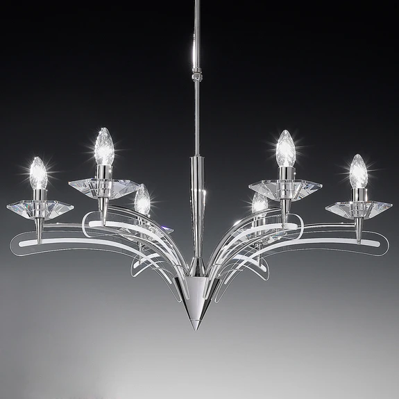 Kronleuchter ICARO 6-fl., mit Kristallglas