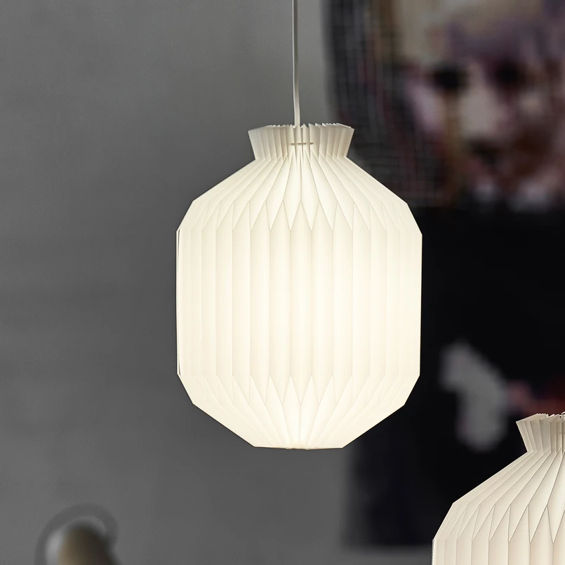 Weiße Hängeleuchte 105 Small mit handgefaltetem Schirm in ovaler Form