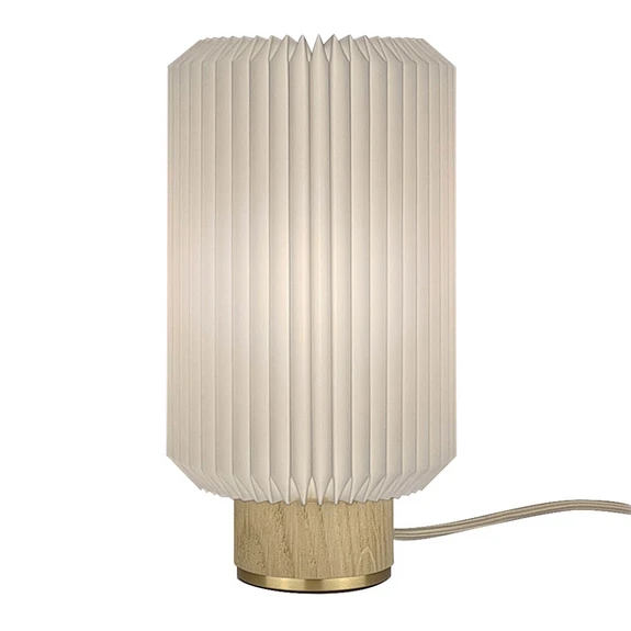 Tischleuchte Cylinder mit hellem Eichenfuß und Hand gefaltetem Schirm
