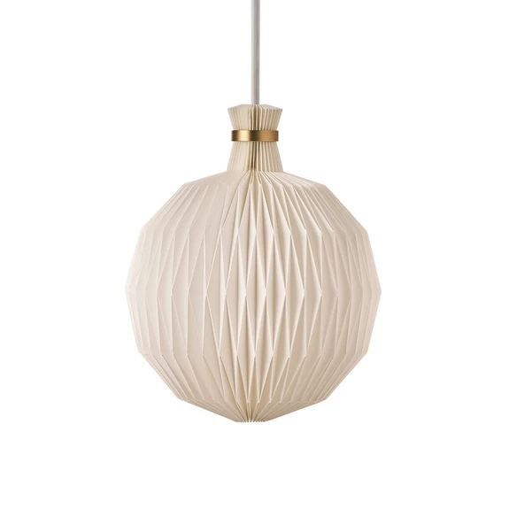Die Hängeleuchte Kaare Klint Legacy 101 von LE KLINT vereint skandinavische Designästhetik mit einer einzigartigen Handwerkstradition. Charakteristisch ist der ikonische Lampenschirm, der aus einem einzigen Stück hochwertigem Kunststoff in präziser Handarbeit gefaltet wird. Diese kunstvolle Kreuzplissee-Faltung, inspiriert von der jahrhundertealten Papierfaltkunst, verleiht der Leuchte ihre skulpturale Form und sorgt zugleich für eine besonders weiche, gleichmäßige Lichtverteilung. Die harmonische Kombination aus weißem Schirm und messingfarbenen Details unterstreicht die zeitlose Eleganz des Designs und fügt sich nahtlos in verschiedenste Raumkonzepte ein – ob im Esszimmer oder im Wohnzimmer.