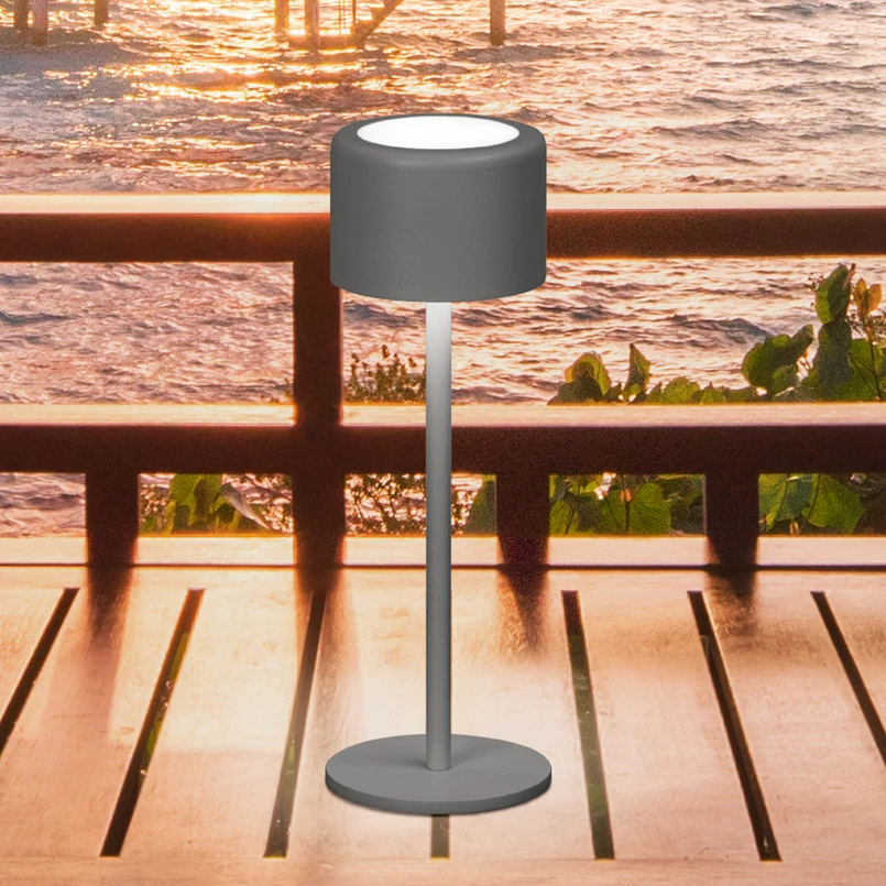 LED-Akku-Tischlampe Juna, sandgrau Höhe 25 cm Metall, IP54