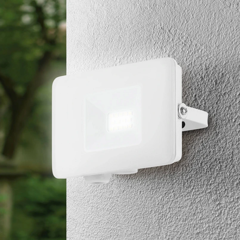Der sehr flache LED-Außenstrahler Faedo 3 aus Aluminium in strahlendem Weiß ist mit der Schutzart IP65 vor dem Eindringen von Staub und vor Strahlwasser geschützt, so dass er sich zur Montage im ungeschützten Außenbereich eignet. Der Montagebügel ermöglicht die Anbringung an einer Wand, unter dem Dachüberstand oder auch in einer Ecke. Im Bügel kann der Strahler den Anforderungen entsprechend geneigt werden. Hinter der klaren Abdeckung aus Glas sitzen energieeffiziente LEDs, die in der Lichtfarbe Universalweiß strahlen.